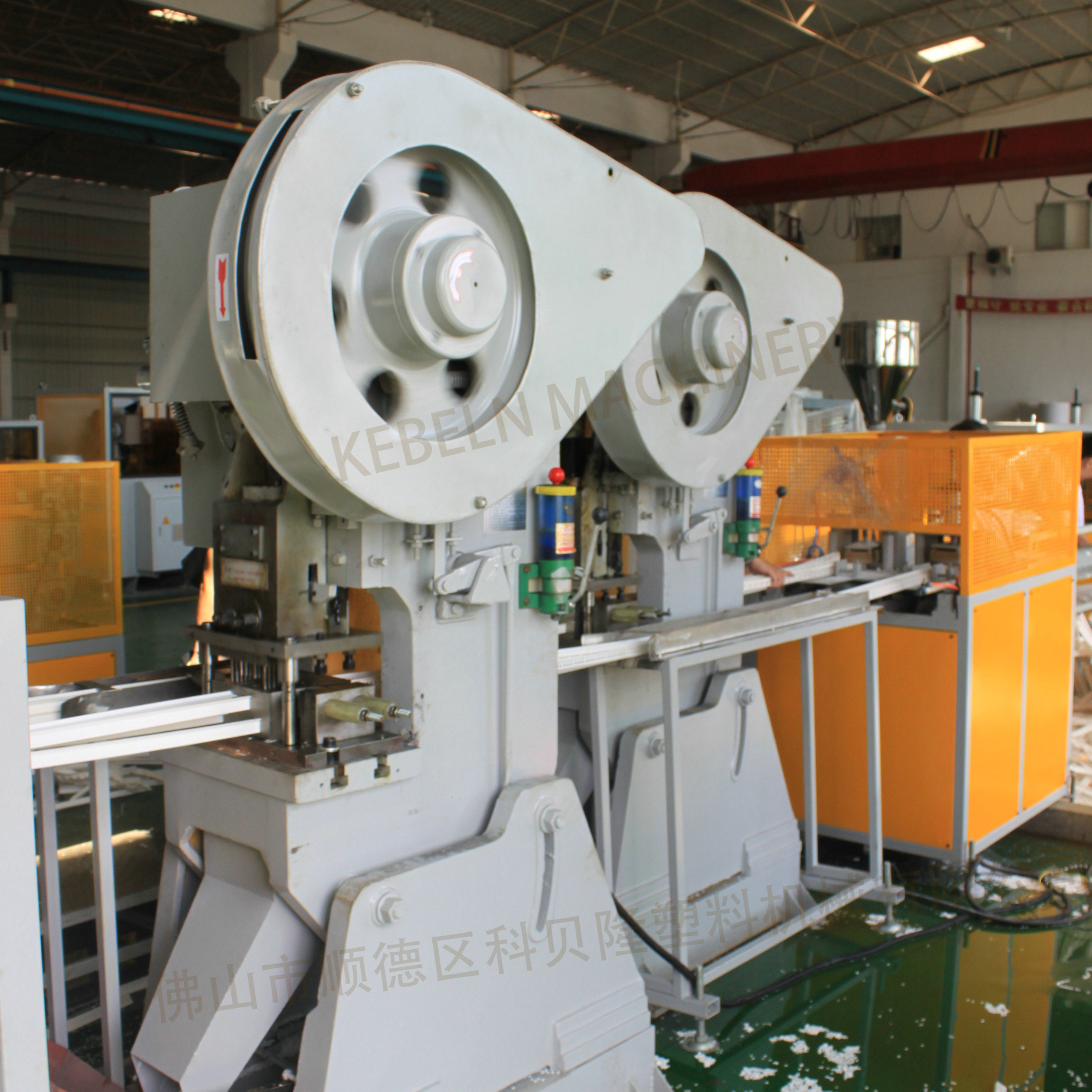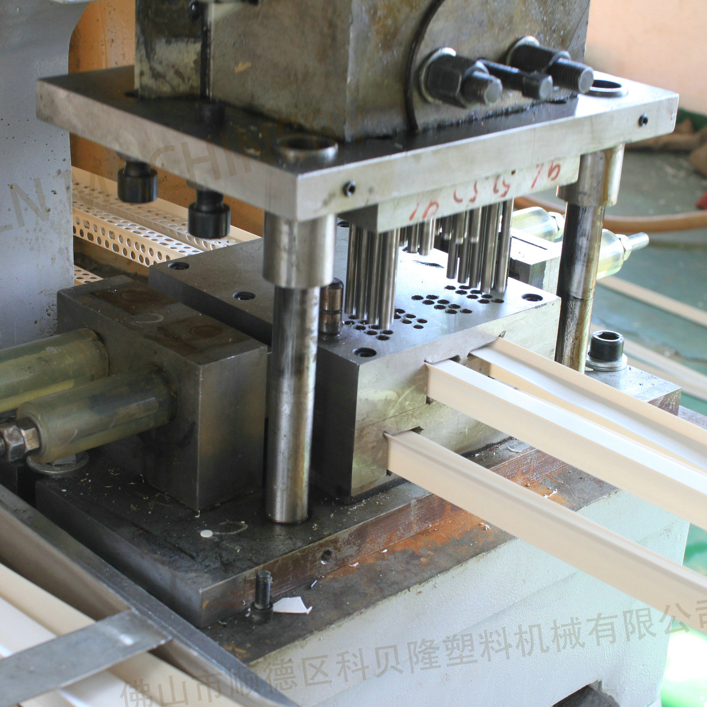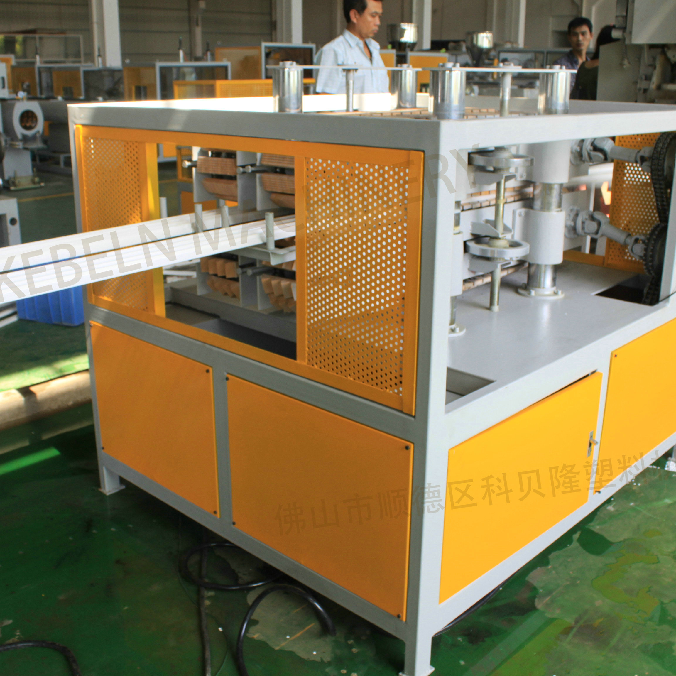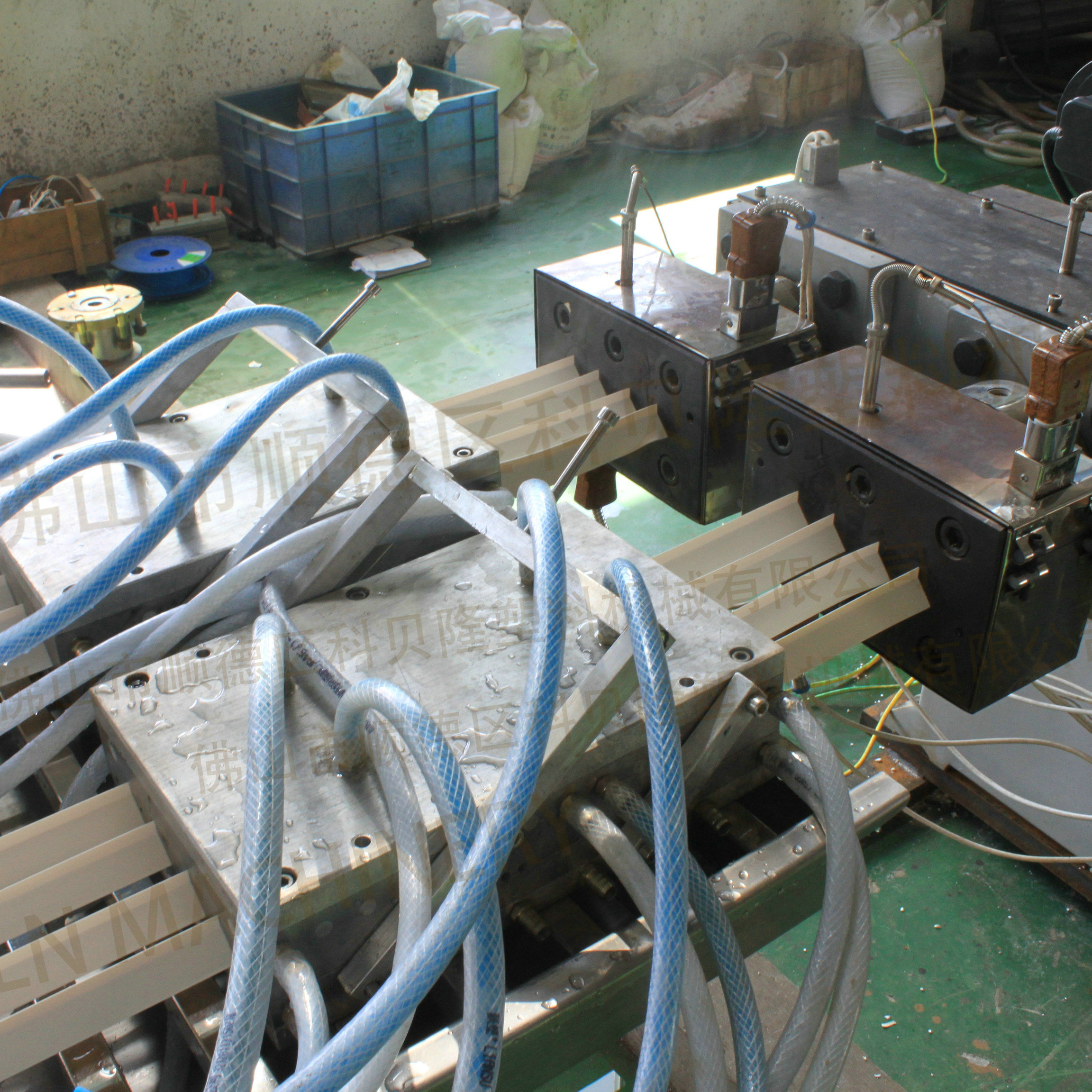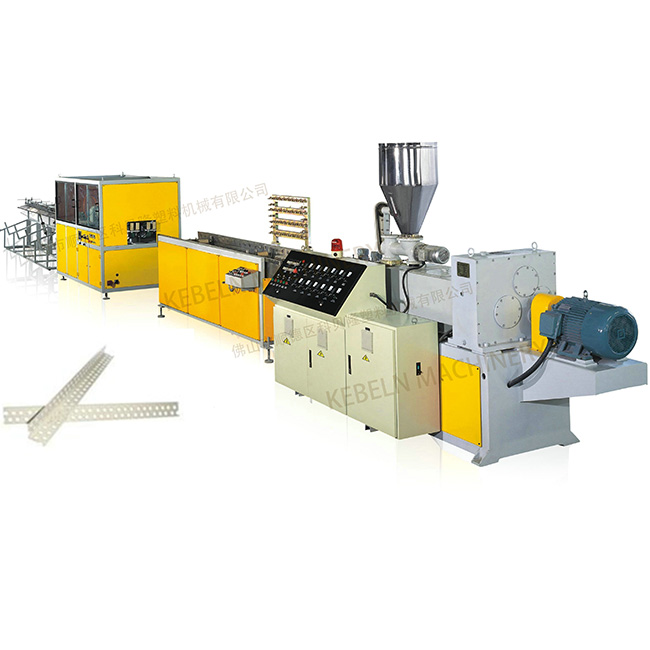 PVC eight wall trims extrusion line is including KBL55/113 conical twin screw extruder ,vacuum forming table for eight pieces ,haul off machine ,cutter and stacker ,one complete set of mould for eight pieces wall trims .The material is PVC,One set mould produce eight pieces at the same time ,machine have quality guarantee,less investment at equipment cost ,factory investment ,production investment.